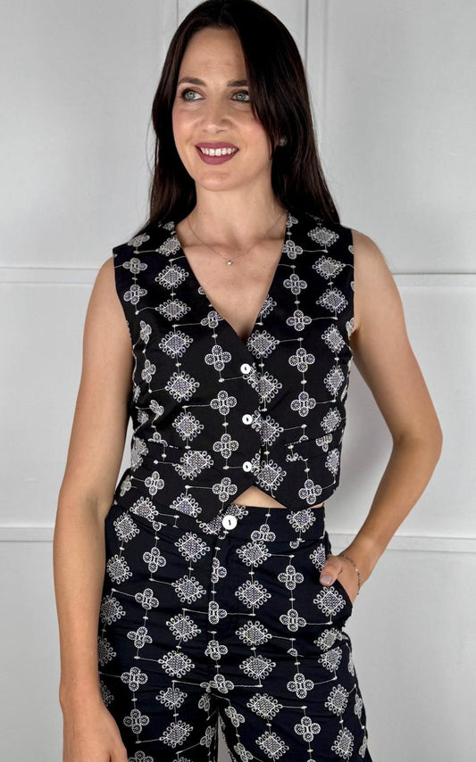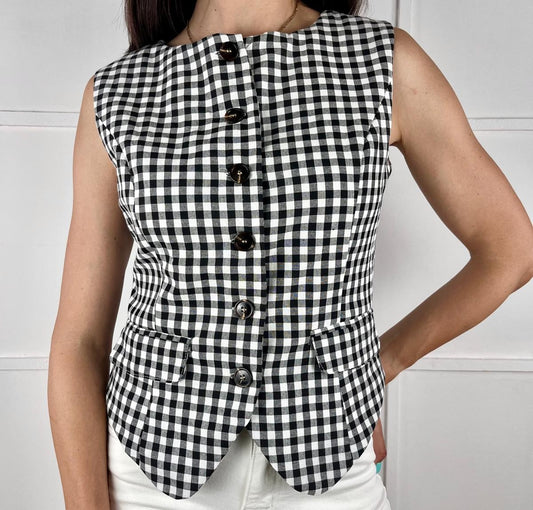 AgotadoCHALECO ENCANTO DE CUADROS NEGRO
