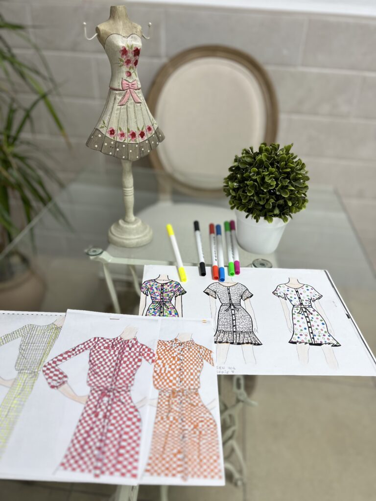 Esto me llevó, con los años, a apuntarme a un curso de costura en un colegio de mi pueblo en el que me iniciaron en el patronaje, corte y confección de prendas. Tras esto quise seguir especializándome en este mundo e hice un curso avanzado de patronaje que me permitió ir ampliando los conocimientos en este mundo.