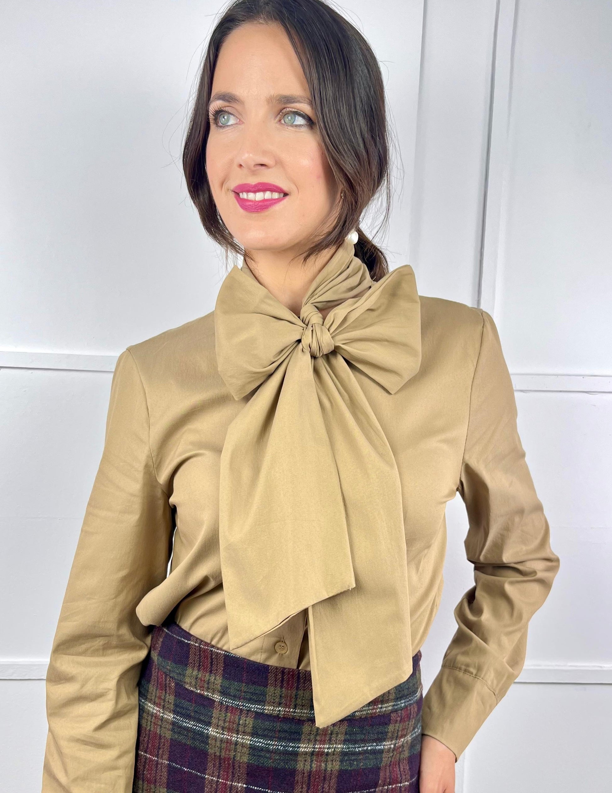 Puedes darle el toque chic y de pura tendencia con cuello lazo XL pero también dejarla sin lazo, con botones abiertos o cerrados, como sea tu estilo, ya que la lazada del cuello es independiente de la camisa y puedes ponerla o no.